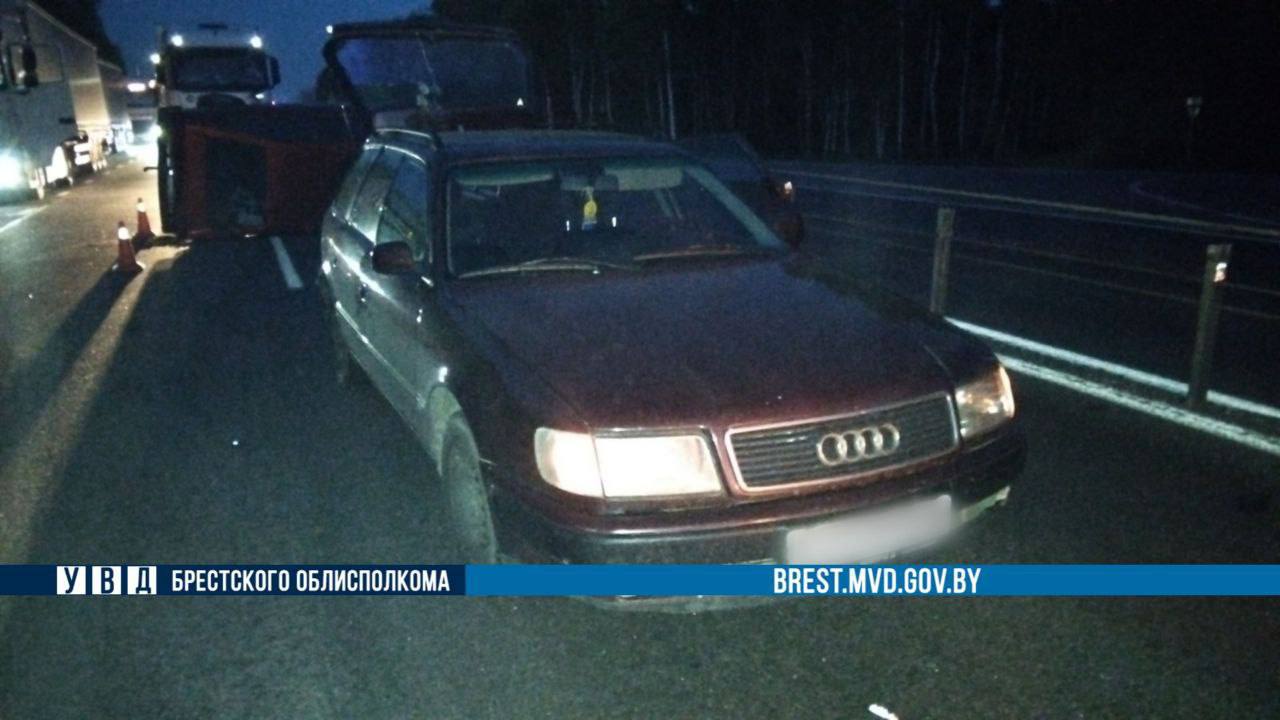 25-летний житель Брестского района, управляя автомобилем «Audi», буксировал способом частичной погрузки автомобиль «Volkswagen» и двигался по автодороге М1/Е30 «Брест-Минск-граница РФ». На 18 километре указанной автодороги, по предварительной информации, в результате создания неустановленным водителем грузового автомобиля аварийной ситуации при выполнении маневра перестроения, не справился с управлением, после чего совершил наезд на турникетное ограждение и допустил опрокидывание буксируемого автомобиля «Volkswagen».