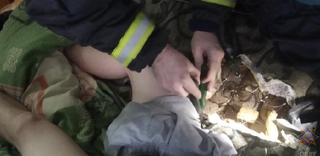 Сегодня в 11-56 на номер 112 поступило сообщение, что в г. Мозыре у молодого человека пружина застряла в ноге.