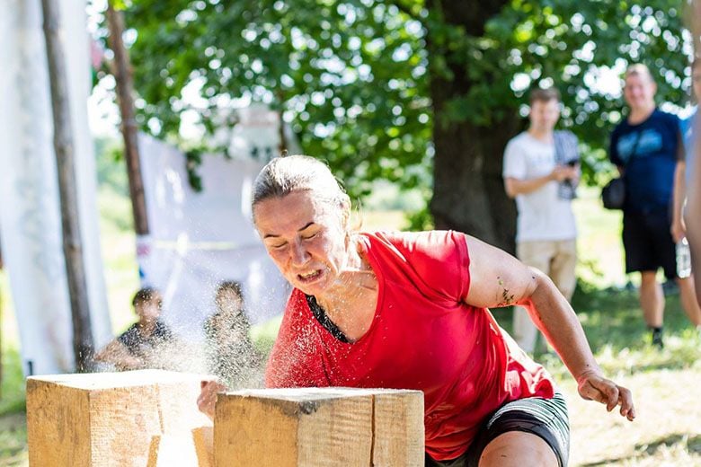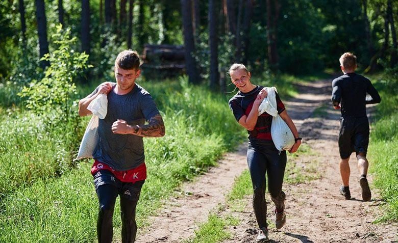 Между стартом и финишем — 10 километров. Обычным кроссом атлеты пробегут лишь часть расстояния, все остальное — серьезное испытание для мышц и силы воли. Например, почти полкилометра нужно будет тащить на себе 30-килограммовый мешок, метров 100 бежать, перекатывая шину от запаски грузовика, и еще столько же ползти в болоте по-пластунски.