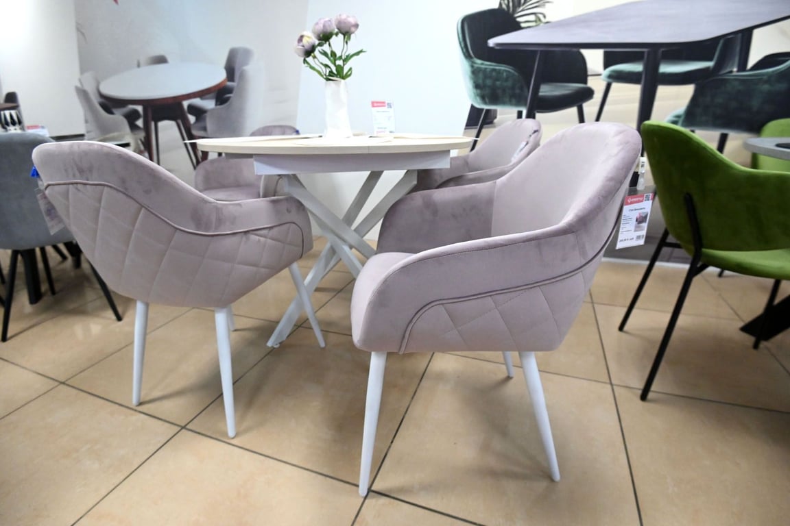 Тренд в кухонных стульях свернул в сторону велюра, более практичного по сравнению с экокожей. Он тоже хорошо чистится, например, свежее пятно сотрется даже сухим полотенцем. При этом более износостойкий. Почти вся коллекция стульев для кухни здесь – с велюровой обивкой.