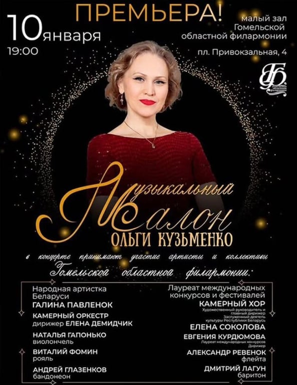 Особую атмосферу салонных камерных концертов в малом зале Гомельской областной филармонии (пл. Привокзальная, 4) создаст лауреат международных конкурсов и фестивалей Ольга Кузьменко. Прозвучат Моцарт, Вивальди, Штраус, Чайковский, а также произведения солиста-мультинструменталиста областной филармонии Андрея Глазенкова.