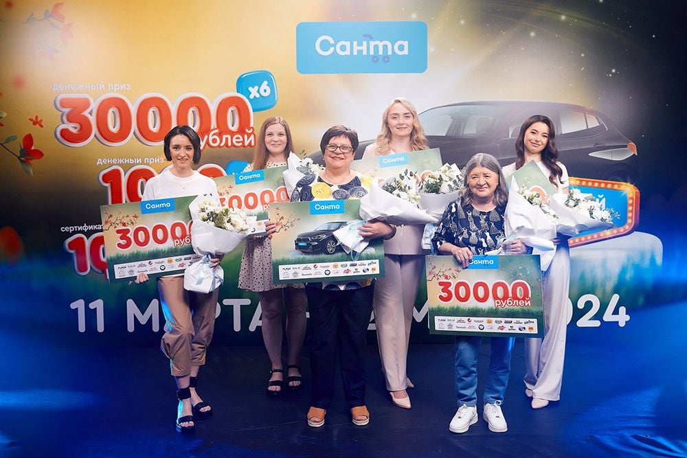 Сейчас в сети «Санта» проходит 16-й тур игры, который продлится по 7 июля. Можно выиграть более 300 призов, в том числе шесть суперпризов по 30 000 рублей каждый. Принять участие в игре может каждый покупатель. Для этого достаточно приобретать игровые товары и при оплате использовать зарегистрированную карту «Санта Бонус».