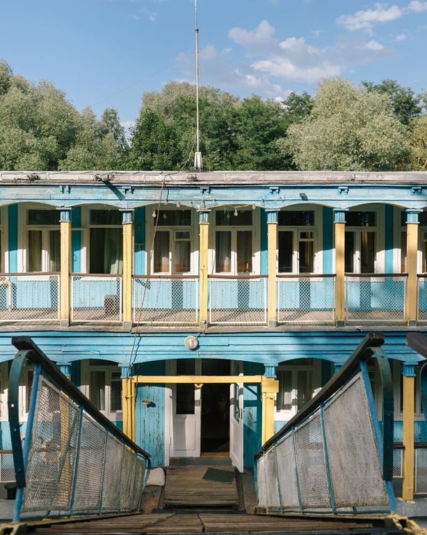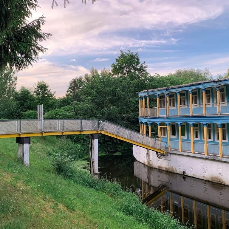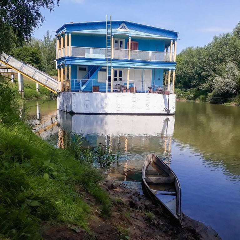 Сегодня это плавучий отель, номерной фонд состоит из 40 комнат-кают. Внутри помещения выглядят весьма аскетично. Например, в них из принципиальных соображений нет телевизора. Он здесь и ни к чему, уверен владелец. Ведь вокруг (а это 100 км от Гомеля) небывалые по красоте пейзажи. Такого по телевизору уж точно не покажут.