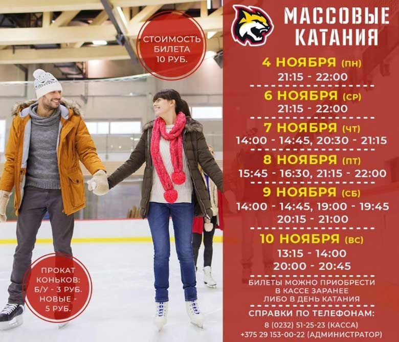 Почём: 10 BYN, прокат коньков — 3-5 BYN