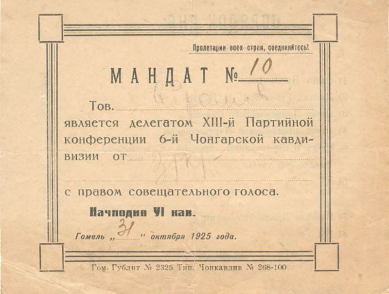 В Гомель же 6-я Чонгарская кавалерийская дивизия пришла в 1923 году, сменив уходившую в Среднюю Азию на борьбу с басмачеством 11-ю Гомельскую кавалерийскую дивизию имени тов. Морозова. Известно, что чонгарцы стояли также в Рогачеве, Жлобине, Бобруйске и Могилеве. А командир дивизии Ока Городовиков – одна из лучших сабель Первой Конной – в 1923 году избирался депутатом Гомельского городского Совета рабочих депутатов.