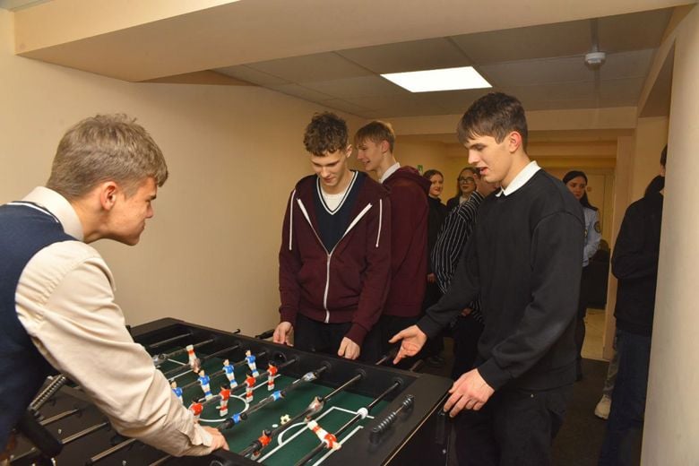 Но занятие спортом в отделе приветствуется − для работников оборудовали полноценный тренажёрный зал. Беговая дорожка, скамья для жима, штанги с дисками, настольный теннис – чтобы потягать «железо», школьники выстроились очередь. После физнагрузок можно принять душ, подкрепиться в комнате приёма пищи и сварить кофе в кофемашине.