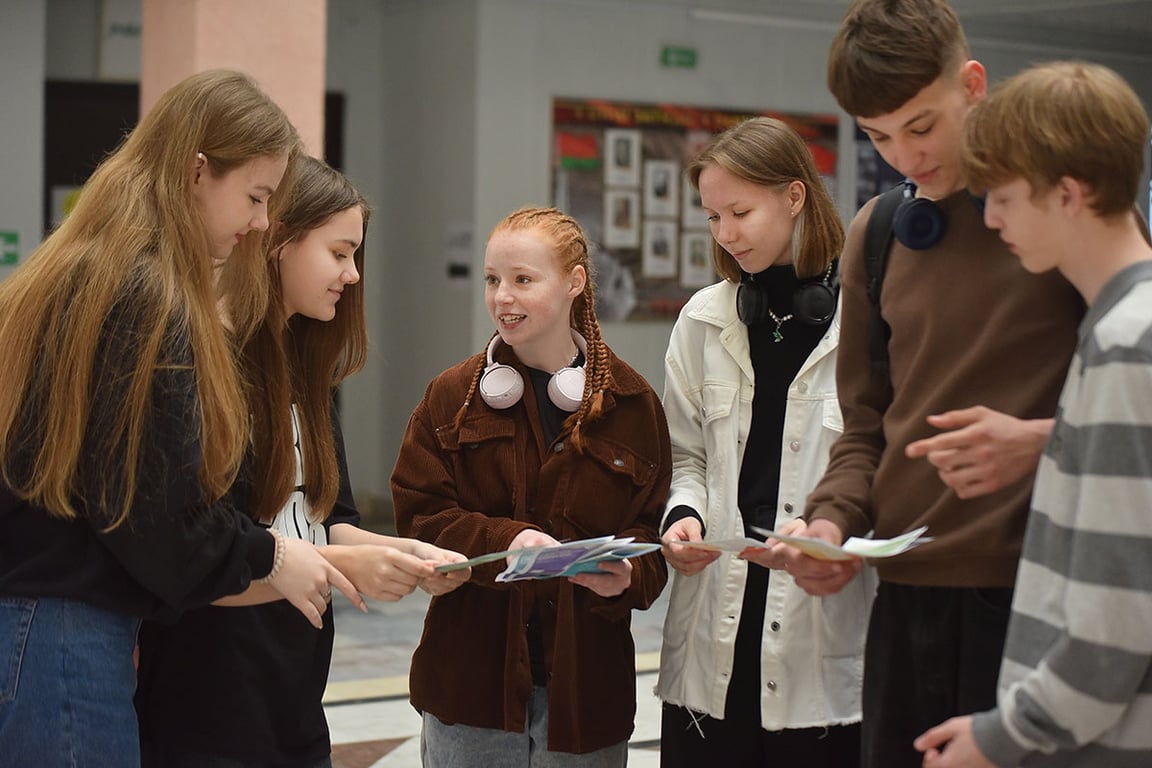 «Та-а-ак. Сейчас пойдем на презентацию гуманитарно-экономического факультета. Что тут у нас? Готовят маркетологов и инженеров-экономистов. На «Маркетинг» всего лишь шесть бюджетных мест», – зачитывает одноклассникам цифры из рекламного проспекта ученица мозырской школы №9 Александра Волкова.