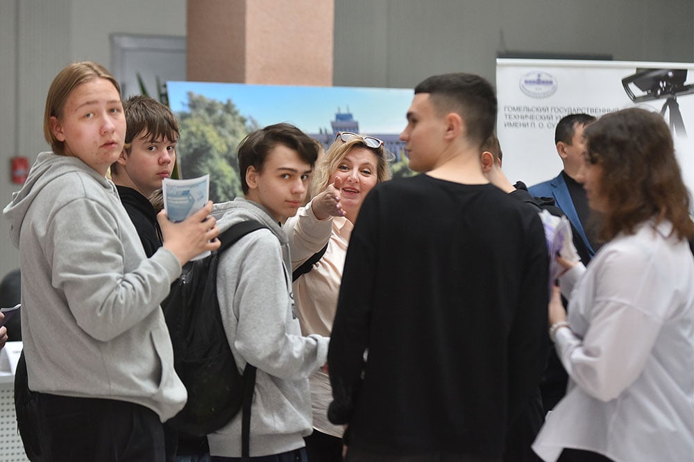 Сегодня в Гомельском государствтенном техническом университете имени П.Сухого проходит День открытых дверей. Более сотни старшеклассников приехали из разных уголков Гомельщины. Компаниями и по одному они регистрируются в фойе вуза и расходятся по аудиториям.