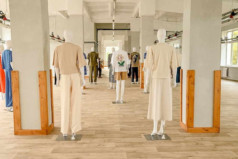 В двухэтажном здании с цокольным этажом расположились швейная бригада, выпускные участки, склад готовой продукции. Отдельного внимания заслуживает концептуальное арт-пространство, раскрывающее историю бренда. На манекенах – первые образцы белорусской одежды и хиты продаж в различные годы.
