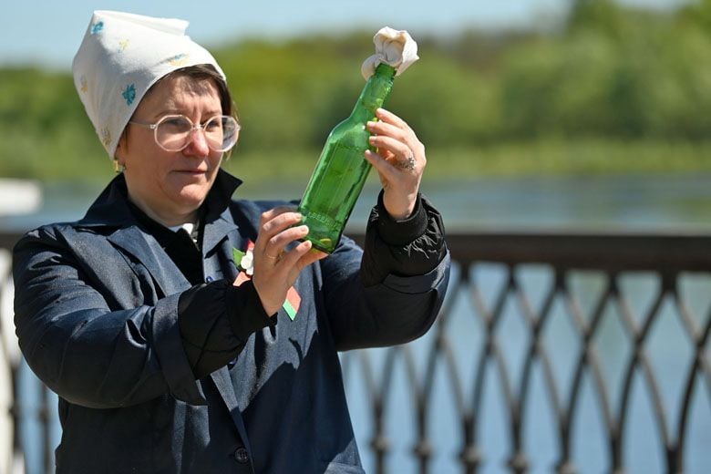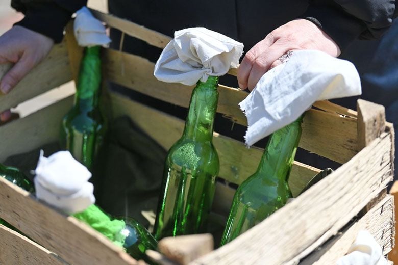 − До того как в Гомеле прозвучали первые выстрелы и взрывы, местные предприятия работали для фронта. На спичечной фабрике «Везувий» (ныне «Гомельдрев») наладили выпуск пехотных мин, а в цехах «Гомсельмаша» вытачивали снаряды, ремонтировали пушки, автомобили и бронетехнику. Кондитерская фабрика «Спартак» готовила для вражеских танков «угощение»: здесь разливали по бутылкам горючую смесь для «коктейлей Молотова». Я сегодня как раз в образе гомельчанки, делающей эту смесь.