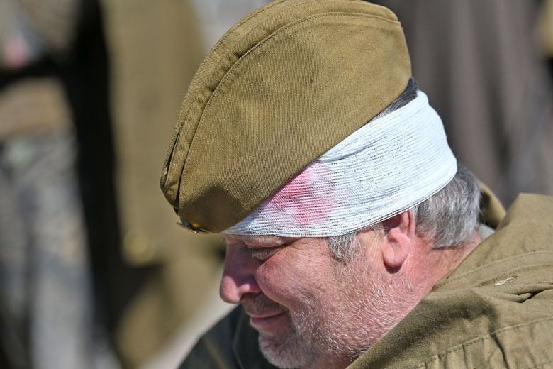 Игорь, в образе контуженного партизана: