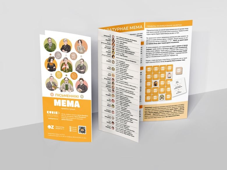 «Мема. Пісьменнікі» – трэцяя гульня ў серыі Мема. Акрамя картак з аўтарскімі ілюстрацыямі да настолкі прыкладаецца брашура з цікавымі фактамі пра беларускіх літаратараў. Спадзяемся, што «Мема. Пісьменнікі» дапаможа не толькі ўзнавіць веды са школьнай праграмы, але і заахвоціць больш чытаць на роднай мове», – адзначылі ў OZ.