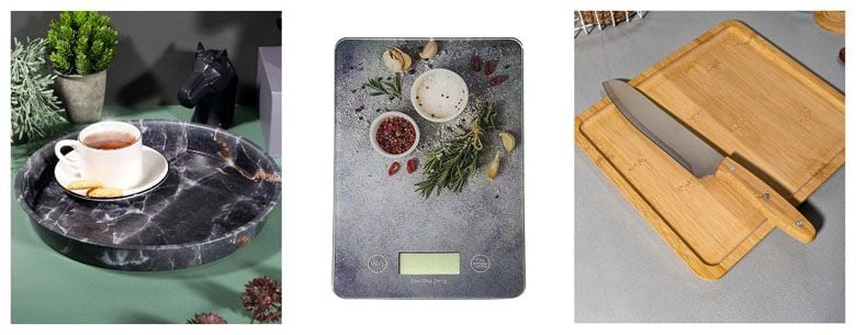 Для практичных хозяек на кухне также будут незаменимы подставки под горячее и для бумажных полотенец, сушилки для посуды и столовых приборов, коврик для раскатки теста, формы для мороженого, печенья, канапе и сэндвичей, доски, подносы, прихватки и прочая полезная утварь.