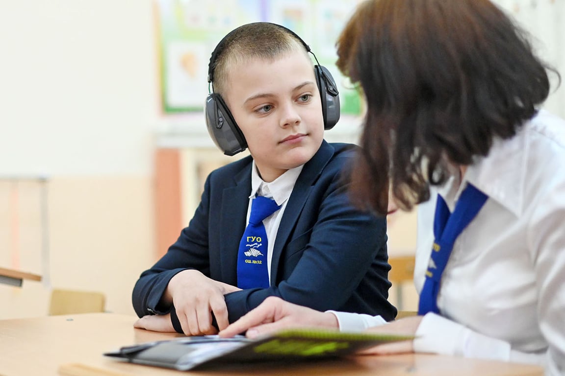 Платон Машевский учится в пятом классе средней школы №32. У мальчика – расстройство аутистического спектра, но это не пугает педагогов. К Платону они относятся так же, как и к другим своим воспитанникам. В стенах школы его курирует воспитатель группы сопровождения. Опытный тьютор, как на профессиональном языке называют таких специалистов, сидит с ним рядом за партой на уроках, помогает успокоиться, если тот разнервничается. Но случается такое редко. От излишнего школьного шума, который Платону сложно переносить, его защищают специальные наушники.