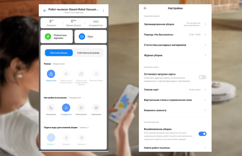 В приложении можно планировать уборку, выставлять виртуальные стены и ограниченные зоны, направлять пылесос и следить за его работой удалённо. Интересная «плюшка» — блокировка от детей, чтобы малыш не смог включить пылесос без ведома родителей.
