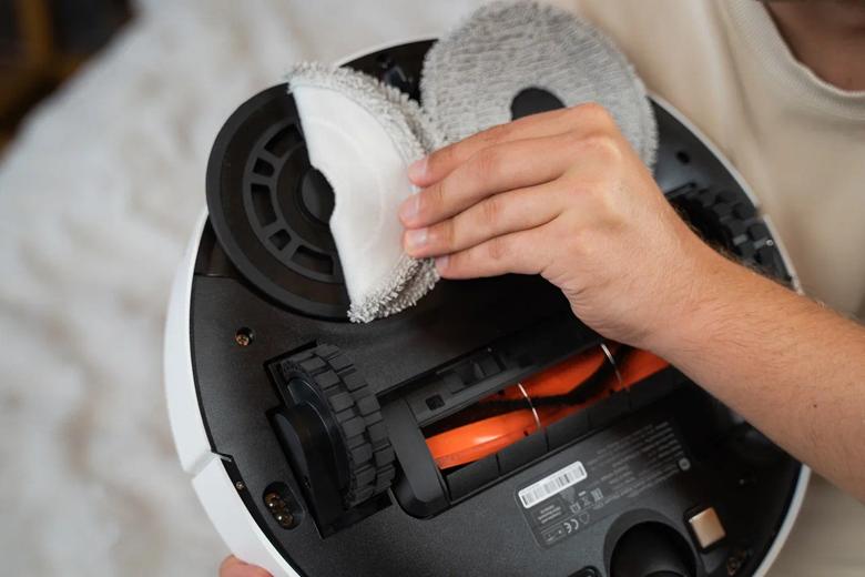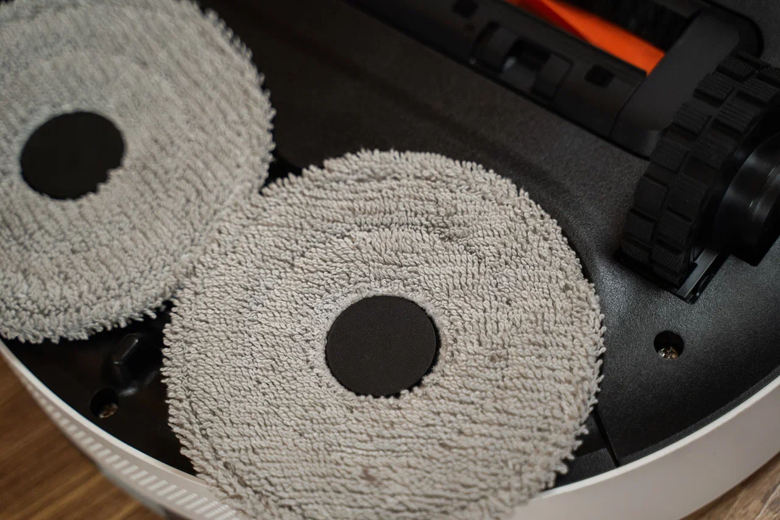 Влажная и комплексная уборка на уровне. Две вращающиеся швабры имитируют давление при ручной уборке и даже автоматически поднимаются при обнаружении ковров. При этом мощность всасывания увеличивается — девайс поистине умный и работает безошибочно.