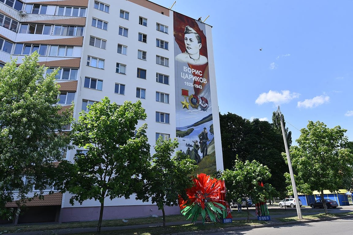 Герой второго мурала — юный разведчик Борис Цариков. Его портрет появился на стене девятиэтажки на Якуба Коласа, 3.