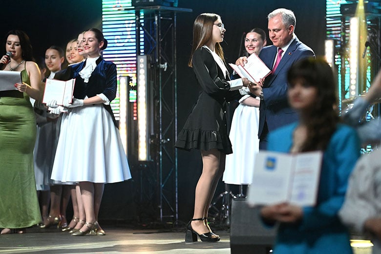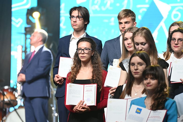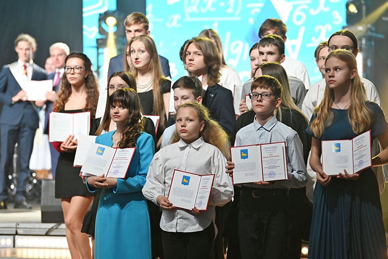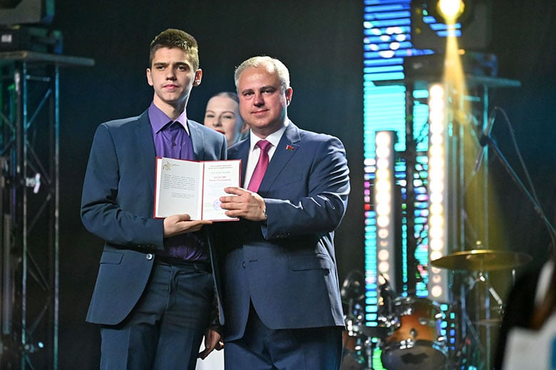 Главным официальным событием вечера стало вручение премий Гомельского горисполкома победителям республиканского этапа школьной олимпиады и талантливым молодым артистам. Всего денежное поощрение получили 58 человек, из них 47 – олимпиадники.