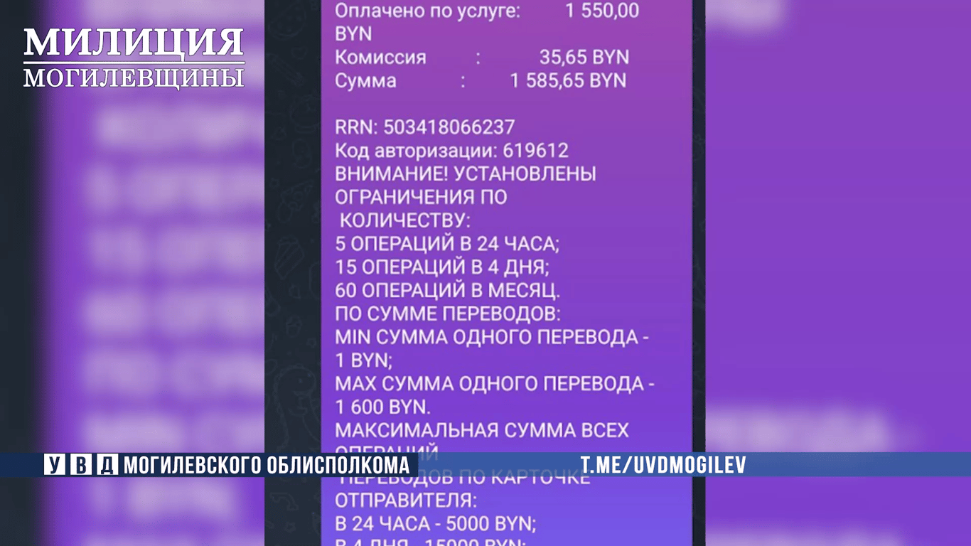 Затем могилевчанина уговорили принять участие в якобы спецоперации по поимке аферистов. Для этого он принимал на свою банковскую карту денежные переводы от обманутых людей, которые затем переводил на указанные мошенниками счета.