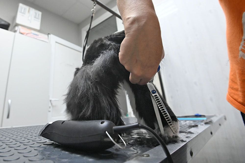 В среднем за смену через руки грумера проходит 4-5 собак. У мастера всегда наготове три главных инструмента: машинка для стрижки, ножницы и фен.