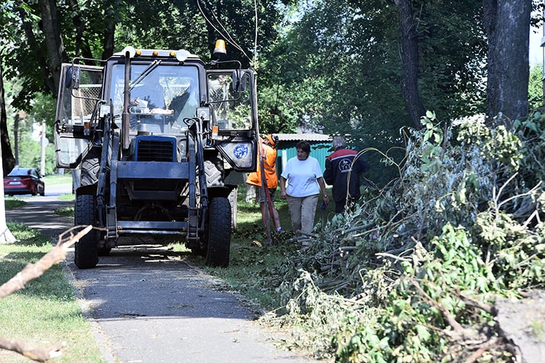 «Я был дома в тот вечер. Когда налетел ветер, сразу и не понял, что всё так серьёзно. Но вскоре позвонило начальство и попросило выйти на работу. Пока шёл на участок, увидел огромные тополя с перевёрнутыми корнями. Тут картина и прояснилась – на город налетел настоящий ураган», – вспоминает события вечера 14 июля рабочий по комплексному обслуживанию РСУ Павел Ковалёв.