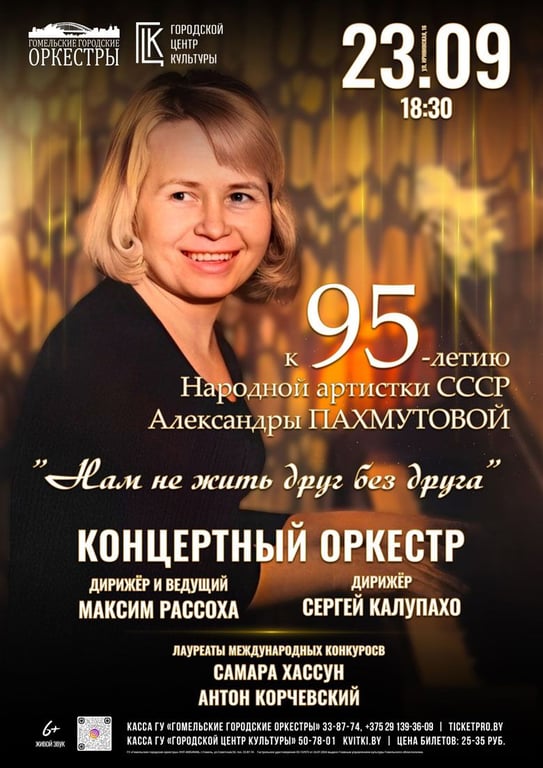А концертный оркестр открывает сезон программой, посвящённой 95-летию композитора и пианистки, Народной артистки СССР Александры Пахмутовой. Ее песни «Надежда», «Нежность», «Ты моя мелодия», «Беловежская пуща» и многие другие поет уже ни одно поколение. Взять хотя бы шедевр «Как молоды мы были», к которому «притрагивались» более сотни вокалистов. Для каждого эта песня своя: яркая, грустная, горькая и трагическая… Кстати, изначально композиция создавалась для женского вокала, но, как мы знаем, первым ее исполнил 26-летний Александр Градский. Так, как и хотел — с «высоким» третьим куплетом, после чего она тут же получила недостающее ей напряжение и стала культовой на века. Даже интересно, что гомельский зритель попросит у оркестра на «бис»…