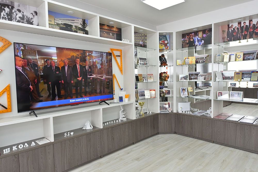 Под музей отвели учебный кабинет, вдоль стен которого расположились витрины с документами. Это приказы о присвоении школе порядкового номера и о внедрении в ней дифференцированного обучения, уставы учреждения. Здесь же расположилась галерея заслуженных учителей разных лет. Установлено мультимедийное оборудование для демонстрации интерактивной части экспозиции, которая будет постоянно актуализироваться.