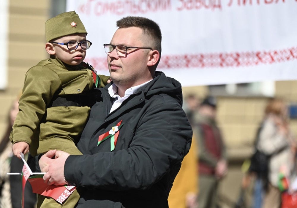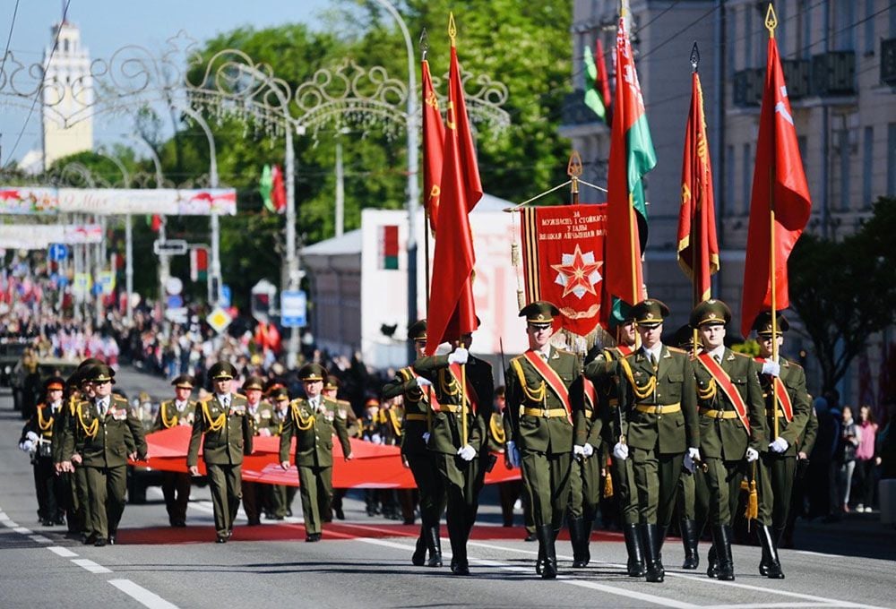 Народная акция «Беларусь помнит» проводится в Гомеле с 2015 года и каждый раз собирает все больше и больше участников. В этом году на праздничное шествие вышли более 20 тысяч человек. Во главе колонны офицеры МЧС несли копию Знамени Победы. Того самого штурмового флага 150-й ордена Кутузова II степени Идрицкой стрелковой дивизии, водруженного над зданием Рейхстага в городе Берлине советскими воинами.