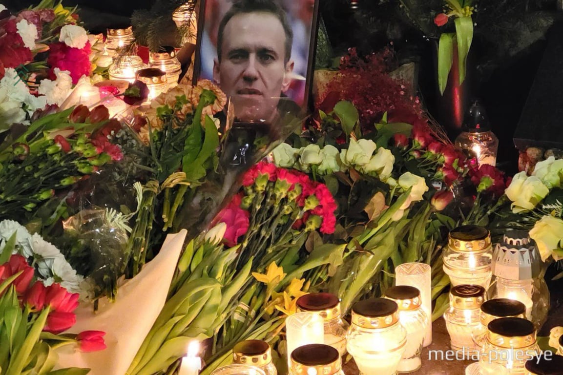 За несколько часов рядом с портретом лидера российской демократии, который скоропостижно скончался в тюрьме, выросли горы цветов. Звучит запись положенного на музыку письма Навального о жизни в тюрьме… Некоторые не скрывают слёз.