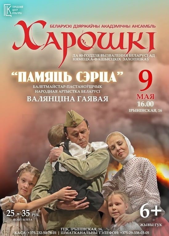 С Днём Победы гомельчан поздравит ансамбль «Хорошки». На сцене Городского центра культуры артисты покажут спектакль «Память сердца».