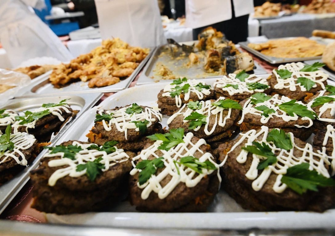 Более основательную пищу приготовил ресторан «Хрустальный». В том числе для гурманов – запечённую курицу с блинами, карпа в овощах, кровяную колбасу с гречкой. Её (по 9,99 за кило) избиратели берут активнее всего. Продавцы в ответ только улыбаются: «Если будет не хватать, подвезём ещё».