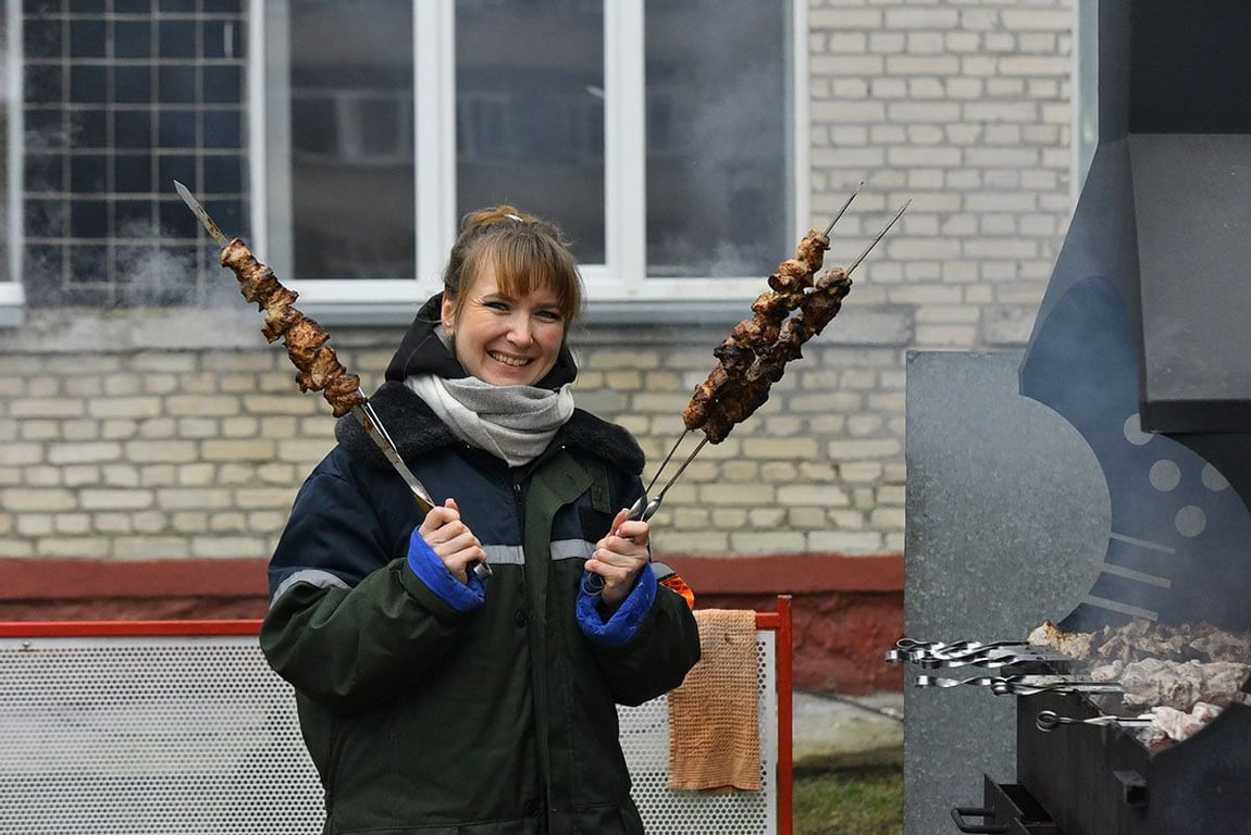 «Для понимания объемов озвучу хотя бы одну цифру – сегодня мы приняли 500 кг сырого мяса. Приготовили из него котлеты, колбасу по-домашнему, руляду, отбивные в кляре, рулет, беляши, смаженки и много другой востребованной продукции. Судя по очередям, раскупят всё», – уверена завпищеблоком Анастасия Каверина.