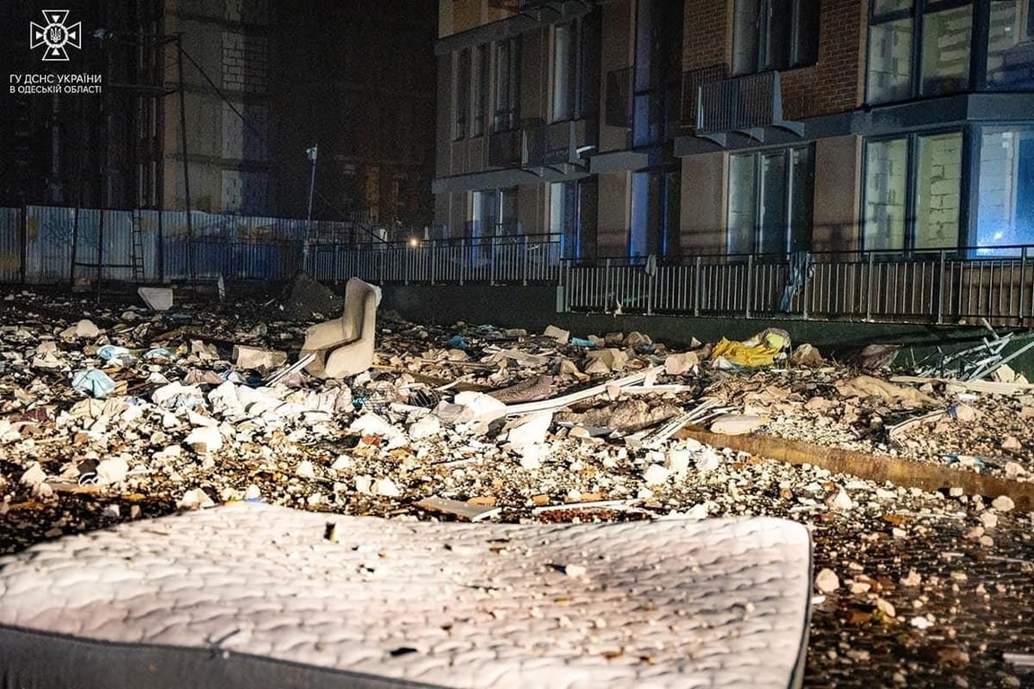 “К сожалению, сбитые дроны по инерционной траектории долетали до жилых кварталов. Один из них, попав в частично заселенную многоэтажную новостройку в Хаджибейском районе Одессы, вызвал пожар. Повреждены несколько квартир, один человек получил ожоги и госпитализирован”, – отмечается в сообщении.