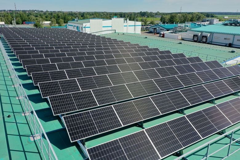 Фотоэлектрические станции (ФЭС) установлены на крышах холодильных камер двух цехов. На них нет конструкций, которые бросали бы тень на солнечные панели. В целом электростанции включают в себя 1233 солнечные панели общей площадью 3100 квадратов, что составляет половину футбольного поля. На производственном комплексе уже есть одна солнечная электростанция ‒ она действует с 2022 года. Новые ФЭС по площади превышают ее более чем в 3 раза.