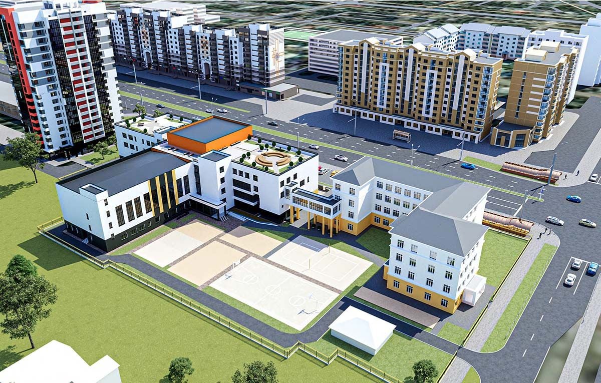Трехэтажный корпус с деревьями на крыше и бассейн с большой и малой чашами. На сайте госзакупок появилось объявление о конкурсе на выполнение проектных и изыскательских работ в средней школе №3.