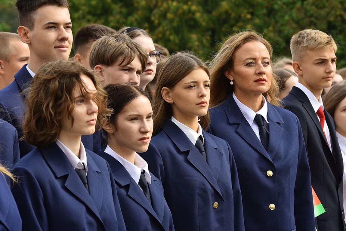На линейке юные правоведы предстали в новой с иголочки форме, которая будет выделять их на фоне остальных учеников. Она полностью повторяет облачение действующих советников юстиции, но не имеет знаков различия.