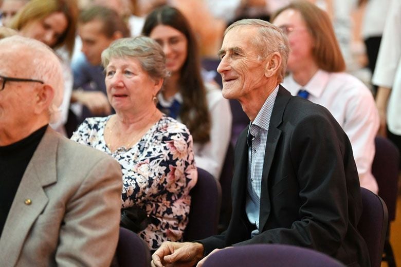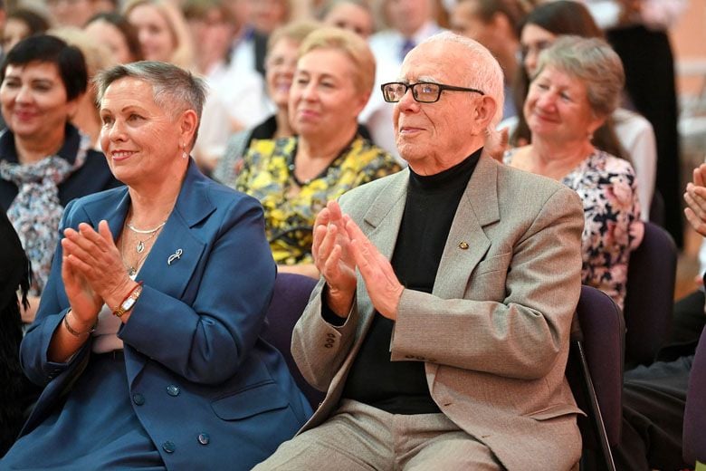 Торжественное мероприятие по случаю круглой даты прошло в актовом зале, где чествовали лучших преподавателей и техперсонал, сказали много теплых слов бывшим педагогам. Смотрите, кто пришел на этот праздник.