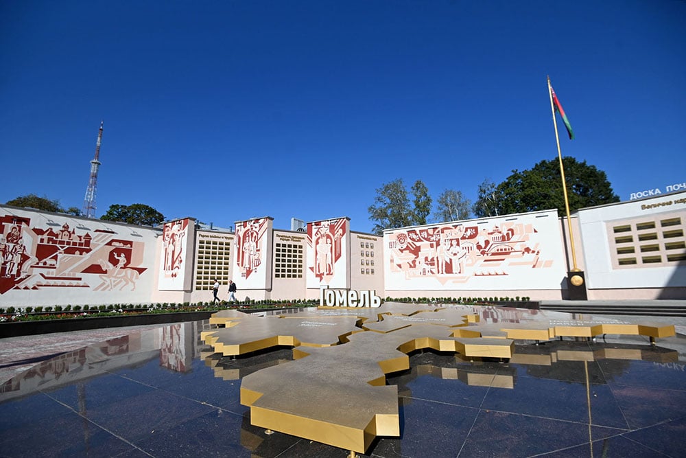 Причина тому – появившаяся в центре площадки карта Гомеля с административным делением на районы, которая в тёмное время суток подсвечивается. А ещё – снова обретшие свою изначальную яркость панно с сюжетами на историческую тему.