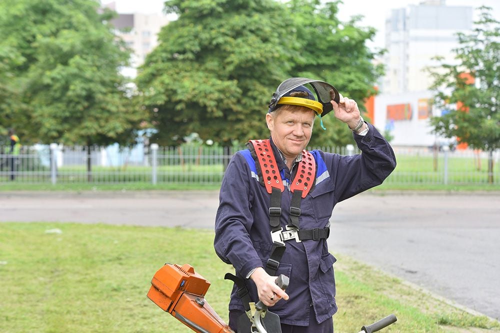 Рассказал нам об этом представитель Гомельских тепловых сетей Алексей Малиновский. Его специализация по основному месту работы – аварийные ситуации. Но в свое время Алексей прошел обучающие курсы и получил допуск к выполнению разовых работ по косьбе, поэтому сегодня он здесь. Рабочие часы ему оплатит родное предприятие.