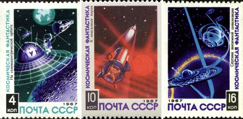 А ещё сюжеты, придуманные художником, активно печатались на почтовых марках. В сети можно найти марки с картинами Соколова 1966-1967 и 1975 годов.