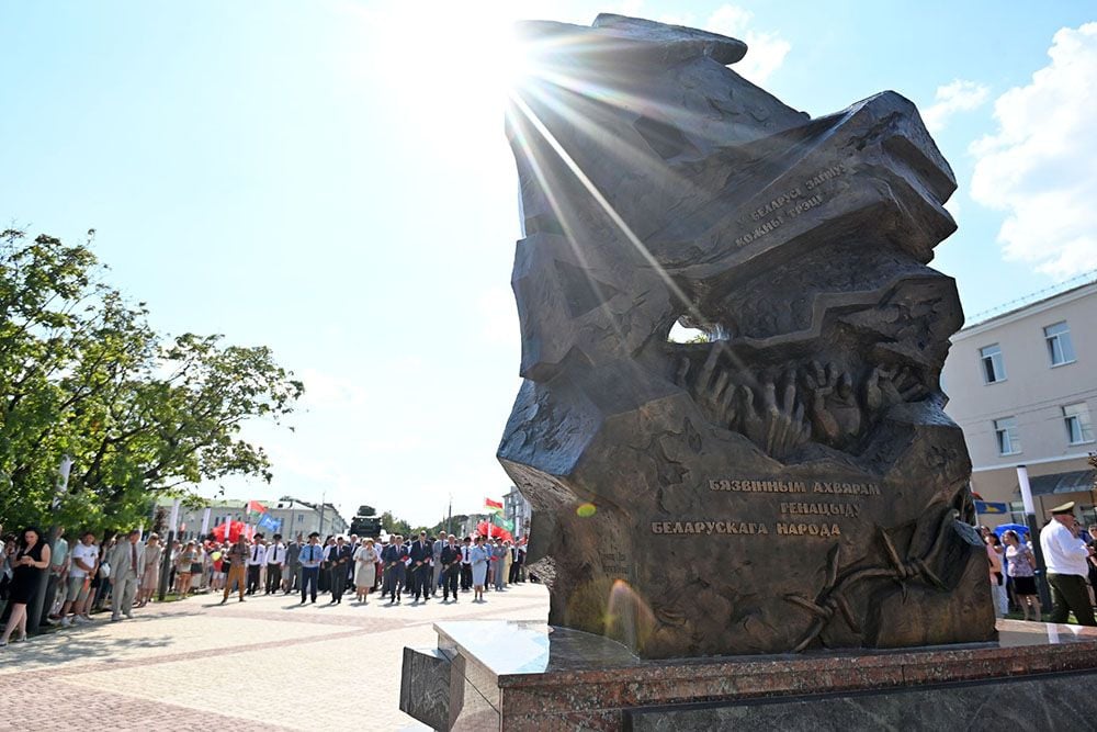 Памятный знак жертвам геноцида белорусского народа в годы Великой Отечественной войны торжественно открыли в Гомеле. Уникальный мемориал занял своё достойное место на площади Восстания, где недавно завершилась реконструкция.