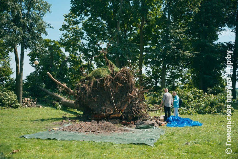 Воскресный ураган оставил след и на территории дворцово-паркового ансамбля. Ветер выкорчевал рядом с гротом два ясеня и клен с общей корневой системой. Оказалось, дерево росло на месте старинного фонтана.
