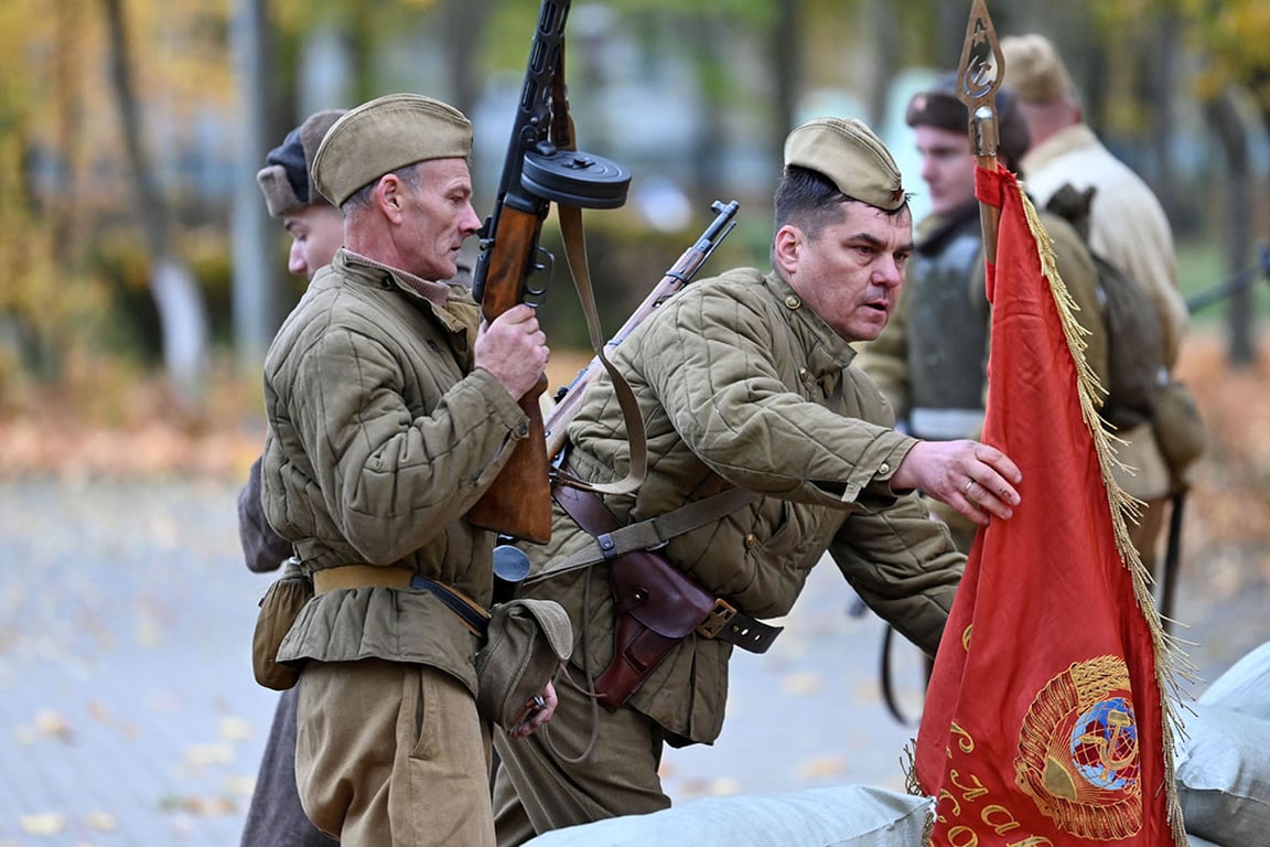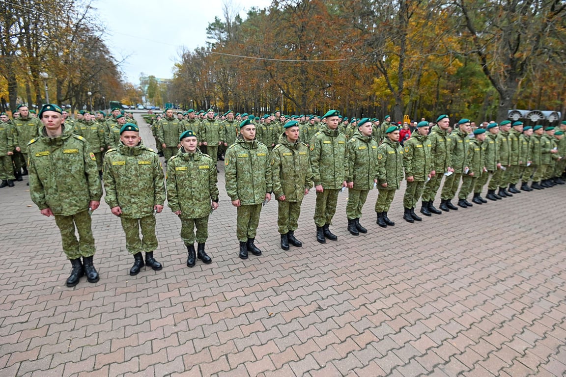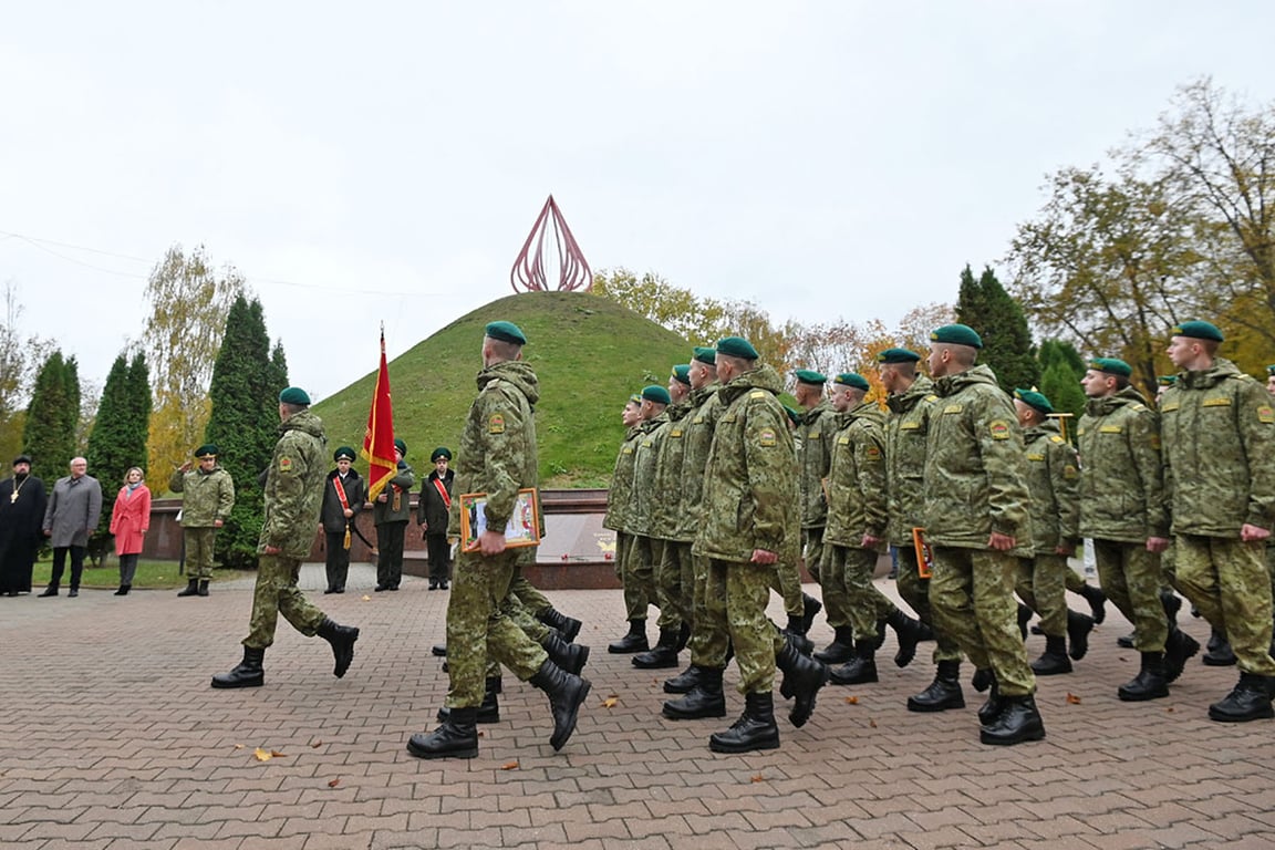 В строю – более 130 военнослужащих, молодые люди со всей Беларуси. На страже юго-западных рубежей страны они несли службу кто год, кто полтора. Пулеметчики, водители, инженеры получили новые навыки и военные знания. Специально для них в областном центре у Кургана Славы организовали торжественные проводы в запас. С прощанием боевого знамени, награждением лучших и реконструкцией локального боя в ноябре 1943-го.