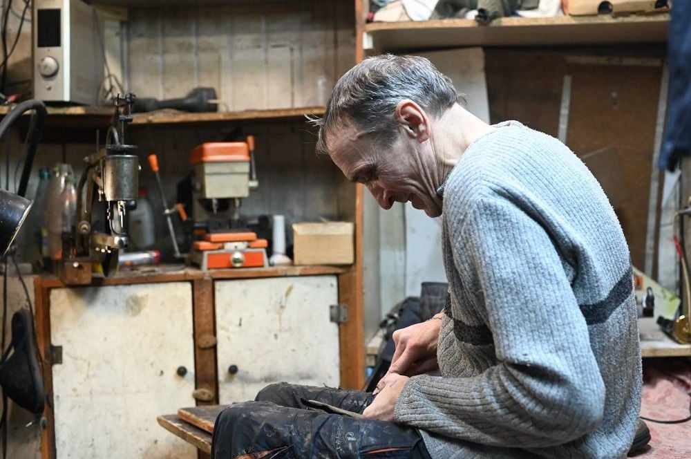 Рабочее место Александра — арендованный ларек на улице Мазурова. В своей миниатюрной мастерской мужчина проводит по восемь часов в день, успевая привести в порядок 5-6 пар обуви. Починки ждут женские ботинки с шипами, полностью усыпанные стразами шпильки, старенькие «найки», убитые осенней непогодой полуботинки.