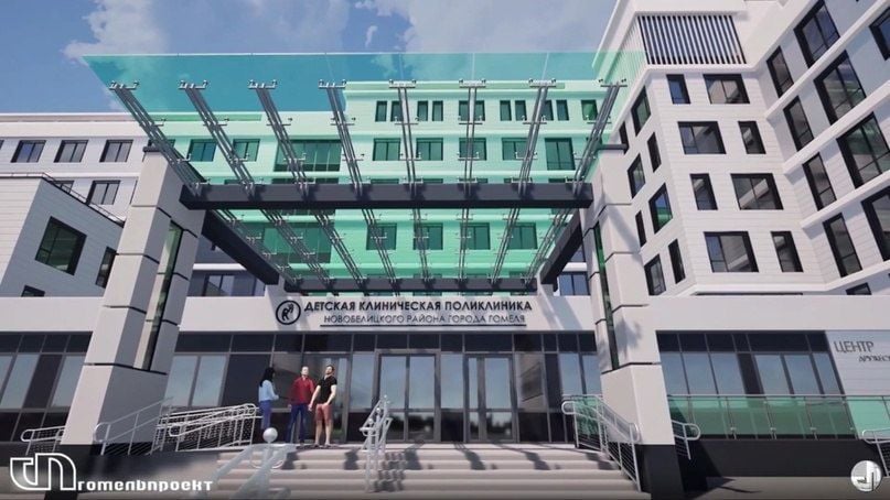 Проект, разработанный институтом «Гомельпроект», предусматривает возведение монолитно-каркасного здания переменной этажности высотой от 1 до 8 этажей, которое будет состоять из шести секций. У входа будет устроен просторный вестибюль с регистратурой. На этажах хватит места и врачам-педиатрам, и узким специалистам.