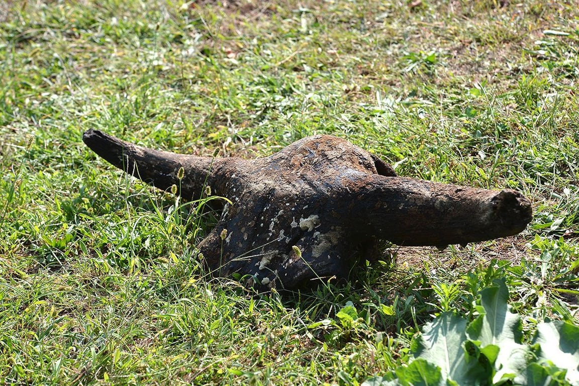С девятиметровой глубины поднята часть черепа с двумя хорошо сохранившимися рогами. То, что это останки бизона, подтвердил заведующий отделом археологии и охраны историко-культурного наследия музея дворцово-паркового ансамбля Юрий Панков.