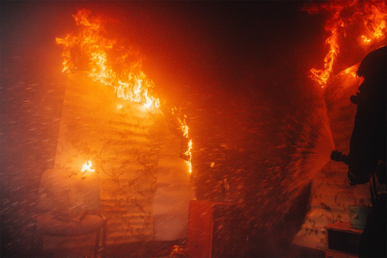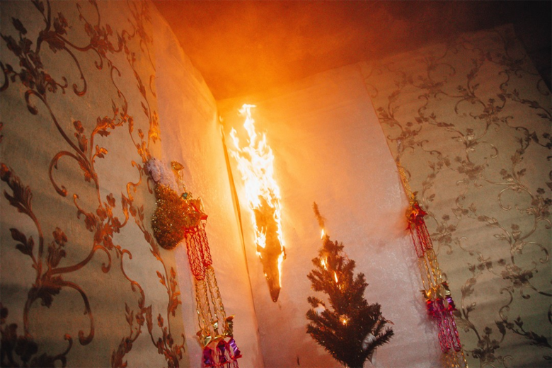 Огонь быстро распространился по всему помещению. Через несколько минут комната превратилась в зону бедствия с едким дымом и запахом от пластмассы.