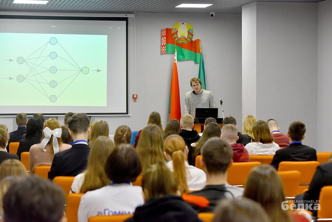 Утро в молодежной столице началось с разговора о роли искусственного интеллекта – студентов, приехавших на форум, пригласили в гомельский технопарк «Коралл».