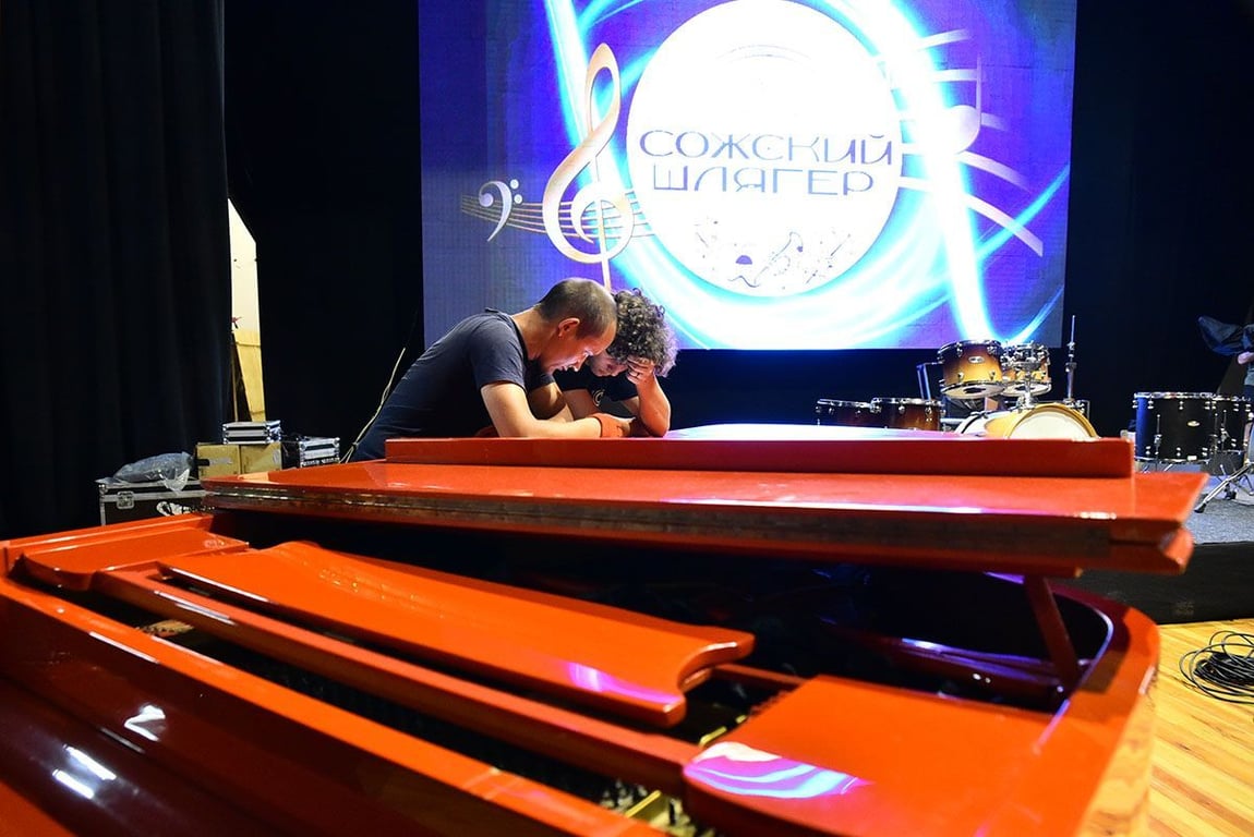 Микрофоны проверены фразой «раз-раз», барабанные установки собраны, комбоусилители не фонят, по большому экрану плывет лого «Сожский шлягер». В Городском центре все готово к началу фестиваля кавер-исполнителей.