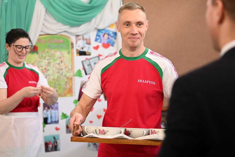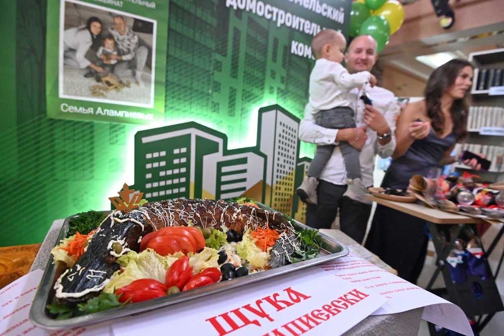 В семье Алампиевых, например, передаются по наследству блюда, которые готовили ещё мамы и бабушки. С аккуратно записанными в общие тетради рецептами могли познакомиться жюри и зрители. А так как глава семьи заядлый рыбак, то и особая гордость супругов – фаршированная щука «По-алампиевски». На выставке можно было попробовать кусочек. Вес выловленной собственноручно хищницы, что красовалась на блюде, оказался более 2 кг. Самый маленький Алампиев – двухлетний Матвей вручал гостям букетики из сушёной рыбы. Трудится супруга Дарья на Гомельском ДСК.
